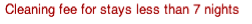 Shorter stays are available on a per night rate, based on weekly rate with an additional cleaning charge as above.